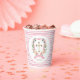 These adorable girl Baptism paper cups would be perfect for your sweet baby's christening. They have the baptism date below a pink watercolor crest with a gold cross surrounded by greenery and roses, your bundle of joy's first name, and a coordinating pink watercolor striped edge. They're unique and precious just like your baby.