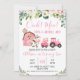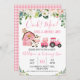 Pink Floral Barn Tractor Farm Birthday Invitation