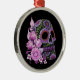 Pink Floral Black Sugar Skull Day Of The Dead Metal Ornament