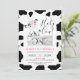 Pink Floral Black White Cow Print 1st Birthday Invitation