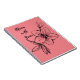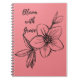 Pink colored notebook with an inspirational quote in black lettering with a floral design.