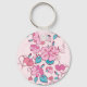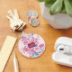 Pink Floral Blossom Script Name Paper Coaster Keychain