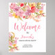 A bright and joyful graduation welcome design featuring hand-painted florals in pink, coral, peach, golden yellow, and soft greenery. The bold blush script headline creates a warm first impression, while the airy white background keeps the layout clean and modern. Watercolor blooms frame the top and corner of the design, giving it a fresh garden-inspired feel without overwhelming the text. This layout works beautifully at the entrance of a graduation party, guiding guests while adding a polished decorative touch.