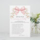 Add a touch of elegance to your cute coquette themed baby girl shower with our sophisticated "Guess who, mommy or daddy" game. Featuring a charming pink watercolor bow surrounded by pink spring or summer flower bloom, this delightful activity is perfect for entertaining your guests and creating lasting memories. Ideal for adding fun and excitement to your special celebration!