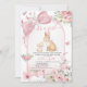 Pink Floral Bunny Pink Bow Baby Shower Invitation