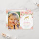 Pink Floral Carousel 1st Birthday Girl with Photo Invitation