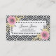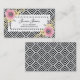 Chic woman's business cards in stylish black and white chevron pattern with a pastel pink floral flourish