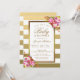 Pink Floral Chic Gold White Stripes Baby Shower Invitation