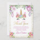 Pink Floral Christmas Unicorn Photo Thank You Card