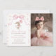 Pink Floral Coquette Bow Bunny 1st Birthday Photo Invitation