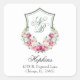 These gorgeous return address labels with a watercolor crest of multi-hued pink peonies, pink and white roses, lilies of the valley and wispy greenery are elegant and romantic. Having these return address labels with your last name and address will make addressing your invitations just that much easier! They are so easy to just stick on the envelope! The fonts are modern yet traditional. It is so easy to make these your own. Simply select Personalize this template, type in your initials, 1st names, and address. It's that easy!