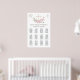 This design features an illustration of pinkish flowers and eucalyptus leaves in watercolor style. On the top of the poster there is an image of a Cross. This is 10 person, 12 tables seating chart poster. You can adjust text according to your requirements.