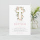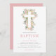Pink Floral Cross Baptism Invitation
