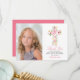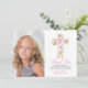 Pink Floral Cross First Holy Communion Thank You Card
