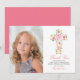 This one photo First Holy Communion thank you card features a pink floral watercolor cross with yellows, coral and greenery leaves and foliage. Perfect for any religious event: First Communion, Baptism, Christening or Confirmation.