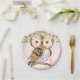 No personalization Pink Floral Crown Owl Birthday Paper Plate