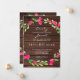Pink Floral Dark Brown Rustic Wood Country Wedding Announcement