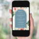 Pink Floral Dusty Blue Arch QR Code Muslim Wedding Invitation