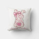 Pink Floral Easter Bunny Coquette Bow Throw Pillow