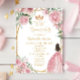 Pink Floral Elegant Dress Gold Frame Quinceanera Invitation