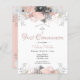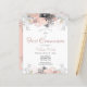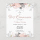 Girly white floral and millennial pink script typography. First Communion floral celebration budget invitations. You can add photos to the back or additional text if needed.