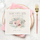 Elegant, custom birthday party paper napkins. Decorated with beautiful blush pink watercolor flowers and sage green leaves on a sparkling glittery gold background. Personalized with the name of the guest of honor and her party date. Contact me for assistance with customization or to request matching or coordinating Zazzle products for your party.