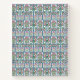 An intricate pattern of bright pink flowers with cheery green foliage and a striped blue piping. The bright green pronouncement, "Notes", is ornately framed with a pink lace border.