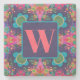 Pink Floral Fun Pattern Pretty Custom Initial Stone Coaster