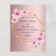 An elegant tropical summer wedding invitation. With a faux gold geometric frame decorated with light pink hibiscus, flowers tropical florals with some greenery. A blush pink faux metallic background.