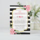 Pink Floral Gold Glitter Stripes Wedding Reception Enclosure Card