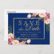 Pink Floral Gold Royal Navy Blue - Save the Date Announcement Postcard
