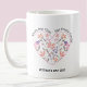 Elevate your Mother’s Day gifting with this pretty floral heart coffee mug. Adorned with a unique floral heart design featuring charming birds in a soft pink, peach, and purple color palette, this mug will add a touch of whimsy to your mom’s morning routine. What makes this mug unique are the three customizable text areas that allow you to personalize it with sentiments like “World’s Best Mom,” “Best Friends Forever,” and “Mother's Day” along with the current year. Create a meaningful gift to express your love and appreciation for your mom.