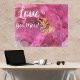 Beautiful faux wrapped canvas wall art with pink flower, the stigma is gold in center of the flower. It has the saying "Love You More."