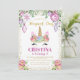 Pink Floral Magical Christmas Unicorn Birthday Invitation
