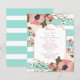 Add some fun to your tables with this charming floral mint blue and white stripes menu card. This floral card features hand drawn pink and white flowers with a blue mint and white background highlighting your food options printed in complementing script and easy-to-read pink and mint blue fonts. The back of the card features coordinating mint and white stripes.