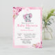 Pink Floral Monogram Elephant Baby Shower Invitation