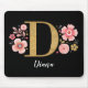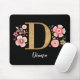 A beautiful, feminine monogrammed pink floral mouse pad, featuring pink flowers and a faux gold monogram letter D on a black background. Personalize the mouse pad by adding your name underneath the monogram. Makes a fun gift for a friend or for a bridesmaid gift. Designed for you by Blackberry Boulevard.