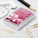 This Zippo lighter features a pink floral design with a text template for your name or initials.