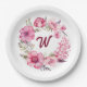 This pretty pink floral bloom monogram paper plate will be the perfect addition to your event. Personalize it with your initial.