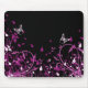Delicate pink leaves and floral print with white butterflies on a black background. Add text to personalize.