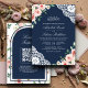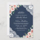 Pink Floral Navy Blue Lace QR Code Muslim Wedding Invitation