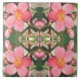 The pink floral pattern on this large Ceramic Tile was created from an original photograph by ZoeSPEAK of pink jatropha flowers and buds blooming in the garden. The closeup photo shows the yellow center of the flower amid the pink petals. The green leaves of the flower on a beige background finish the pattern.