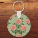 Pink Floral Pattern on Green Background | Seamless Keychain