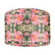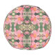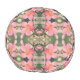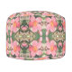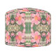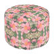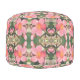 The original pink floral pattern by ZoeSPEAK on this Round Pouf was created from an original photograph of pink jatropha flowers and buds blooming in the garden. The closeup photo shows the yellow center of the flower amid the pink petals. The green leaves of the flower on a beige background finish the pattern.
