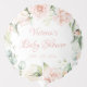 Personalized pink script on a white background elegant decorative balloon with pink floral watercolor frame of pink & blush flowers and flowing greenery surrounding fancy script to create a beautiful table setting. Perfect baby shower tablescape for the baby girl.