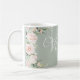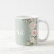 Pretty pink floral watercolor elegant script personalized mug. Sage green background makes this so pretty and dainty.