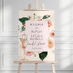 This is a fresh and modern pink and peach floral "Petals & Prosecco" bridal shower welcome sign to celebrate the bride-to-be! Using a design of bohemian and pretty pink and peachy florals, a flute of pink champagne and matching soft blush and creamy background colors, edit all of the text as required using the provided template and celebrate the bride’s upcoming nuptials in bohemian style.