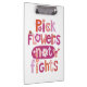 A cute pink, red and purple, hand lettered quote that says, "Pick flowers not fights" decorates this clipboard. A playful reminder in the home for the kids to be nice. Designed for you by Blackberry Boulevard.