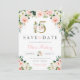A quinceañera save the date card with pretty watercolor floral graphics in soft pink, white, green and gold tones and a modern font. These stylish cards are the perfect way to let family and friends know your party date. Pair with anything in the BLUSH collection for a cohesive look.