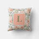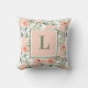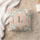 Pink Floral Rose Monogram Throw Pillow - feminine, girly, modern home decor. Watercolor botanical floral pattern.